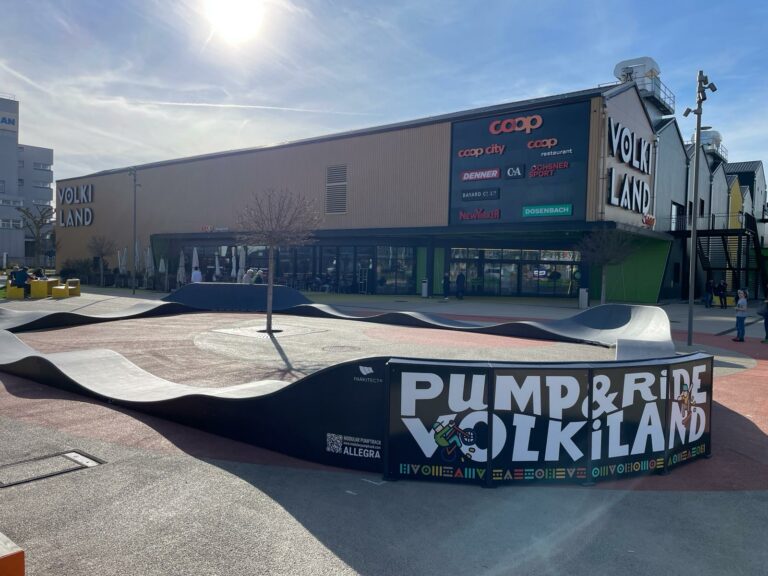 Esta Modular Pumptrack con la publicidad impresa QUADRAGON Classic Edition estará frente al centro comercial Volkiland en Suiza a partir de marzo de 2024 y ocasionalmente podrá viajar a otros centros comerciales.