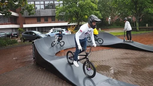 Le Pumptrack Modulaire Édition Urbaine de Recklinghausen allie action, sport et convivialité en plein cœur de la ville. Vivez les vagues urbaines ! 🌊